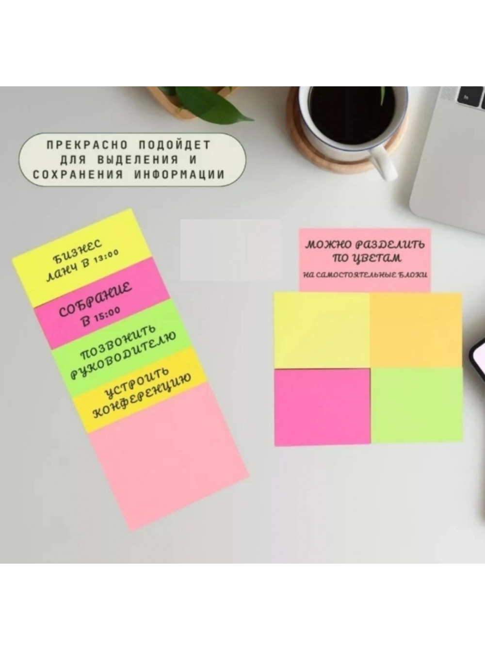 Блок для записей 76*76, 300шт, бумажные стикеры липкие для заметок разноцветные с липким слоем.