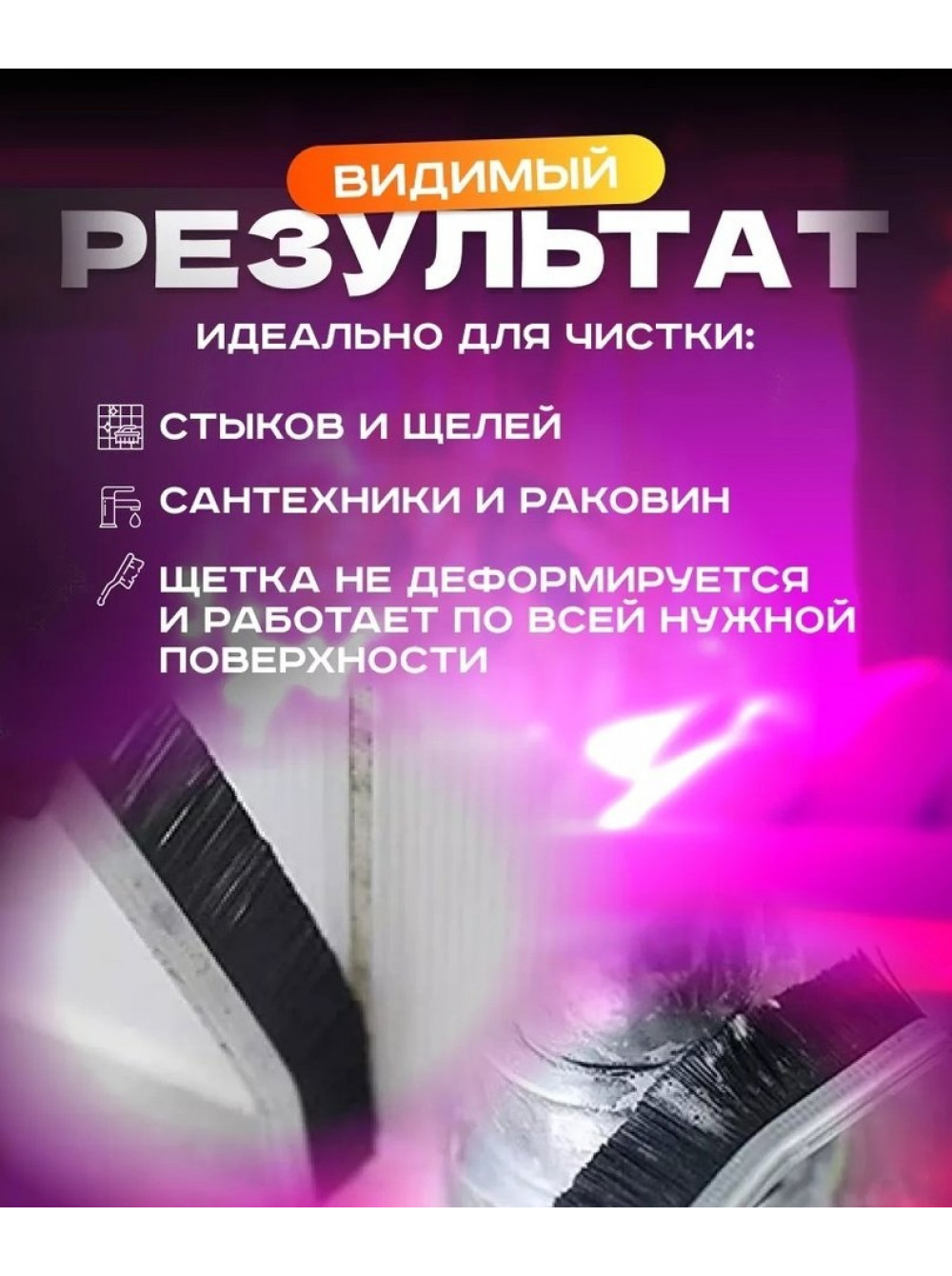 Щëтка - это незаменимая помощница в домашнем хозяйстве. Она справится со всеми труднодоступными местами, как щели, углы, швы на плитке, трапы в душевой и поможет избавиться от сложных загрязнений в ванной, туалете, кухне.