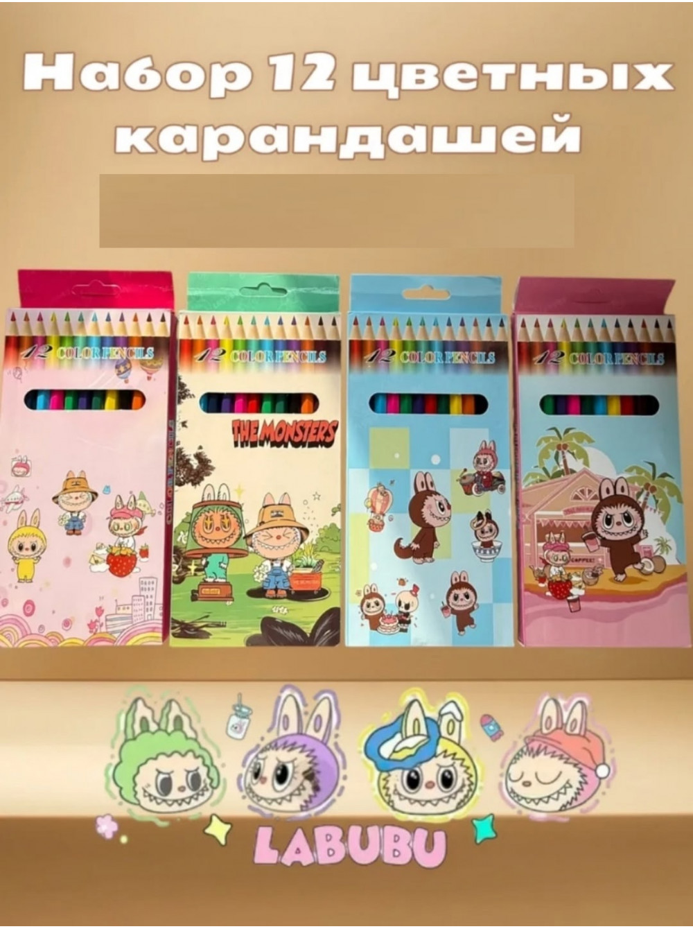 Набор цветных карандашей 12 цветов ЛАБУБУ