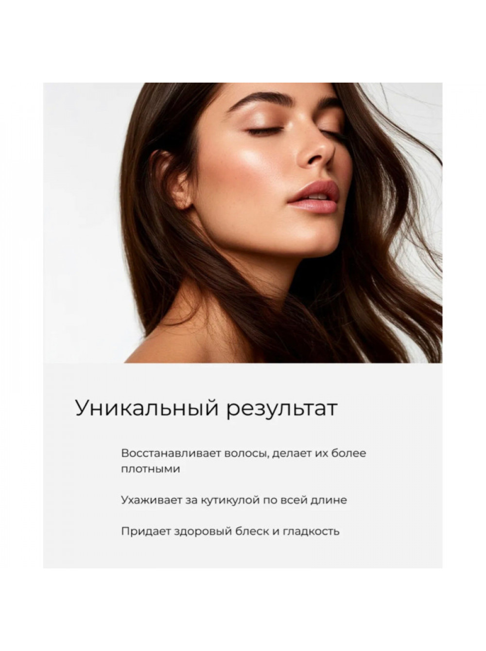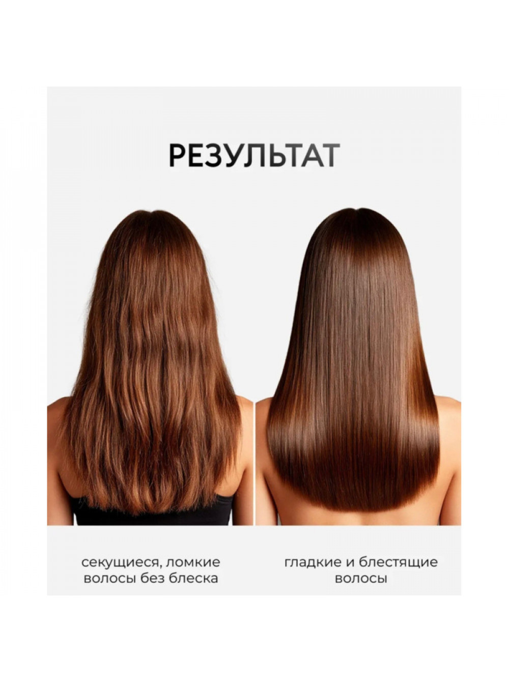 Содержит комплекс аминокислот и кератина для восстановления и гладкости волос.