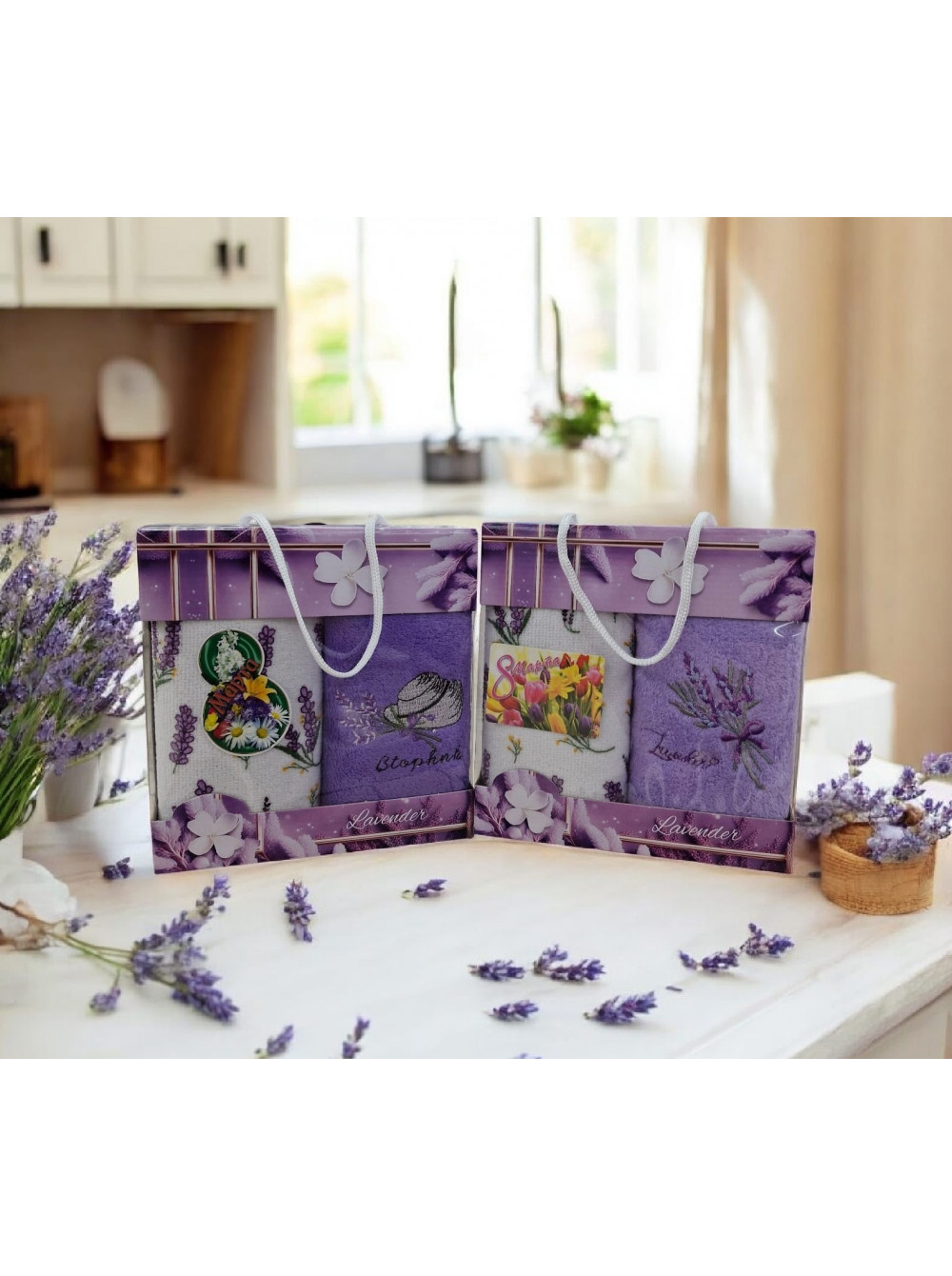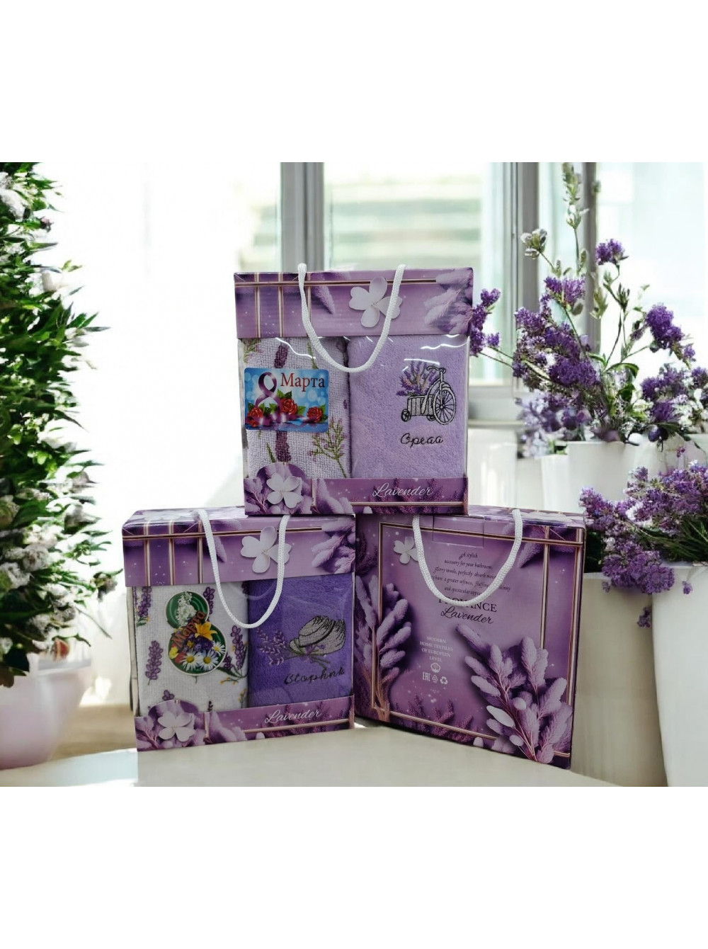 Подарочные набор 3в1 полотенца из микрофибры в коробке (2 шт) "ЛАВАНДА"
