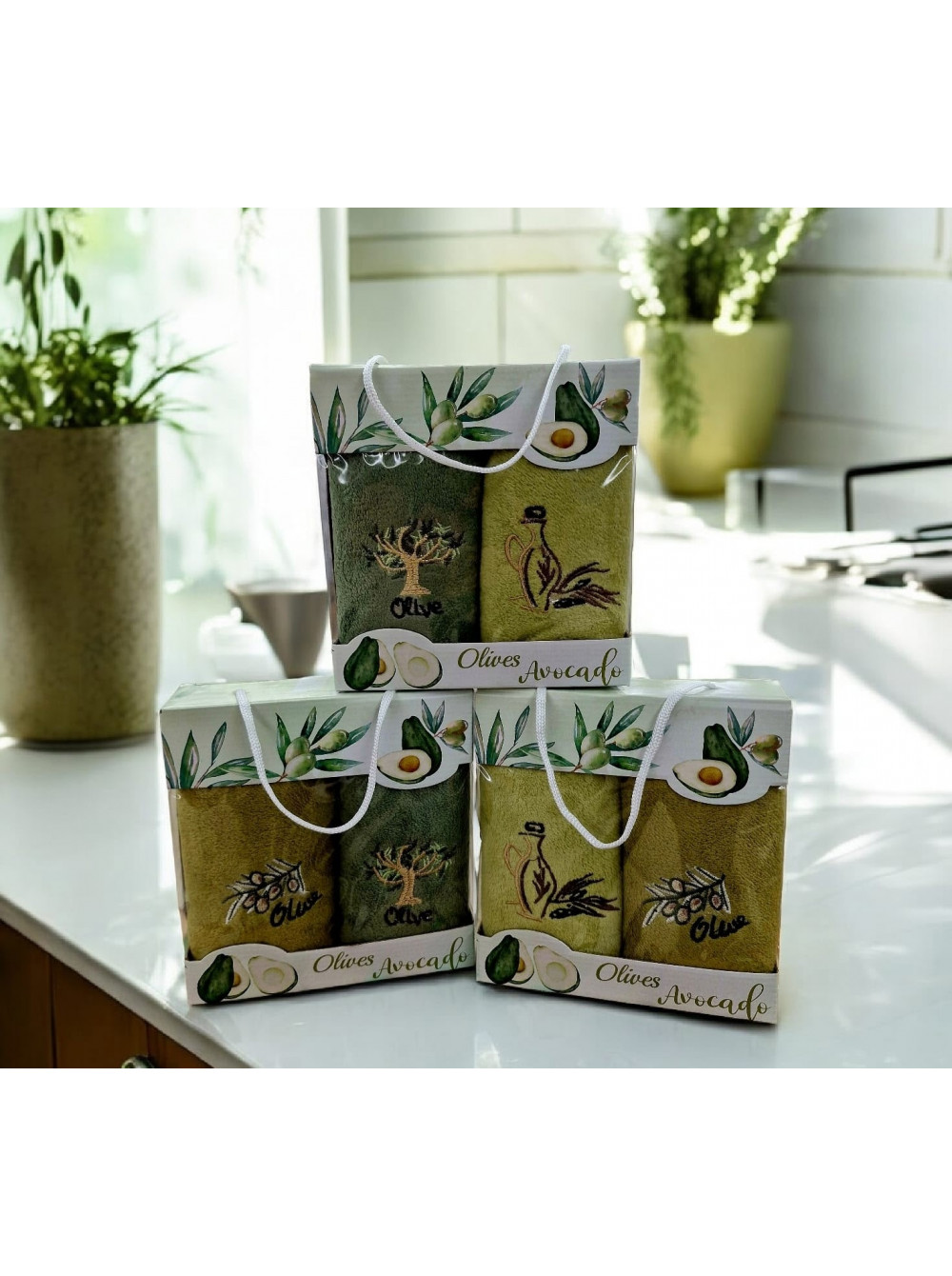 Подарочные набор 2в1 полотенца из микрофибры в коробке (2 шт) "ОЛИВКА"